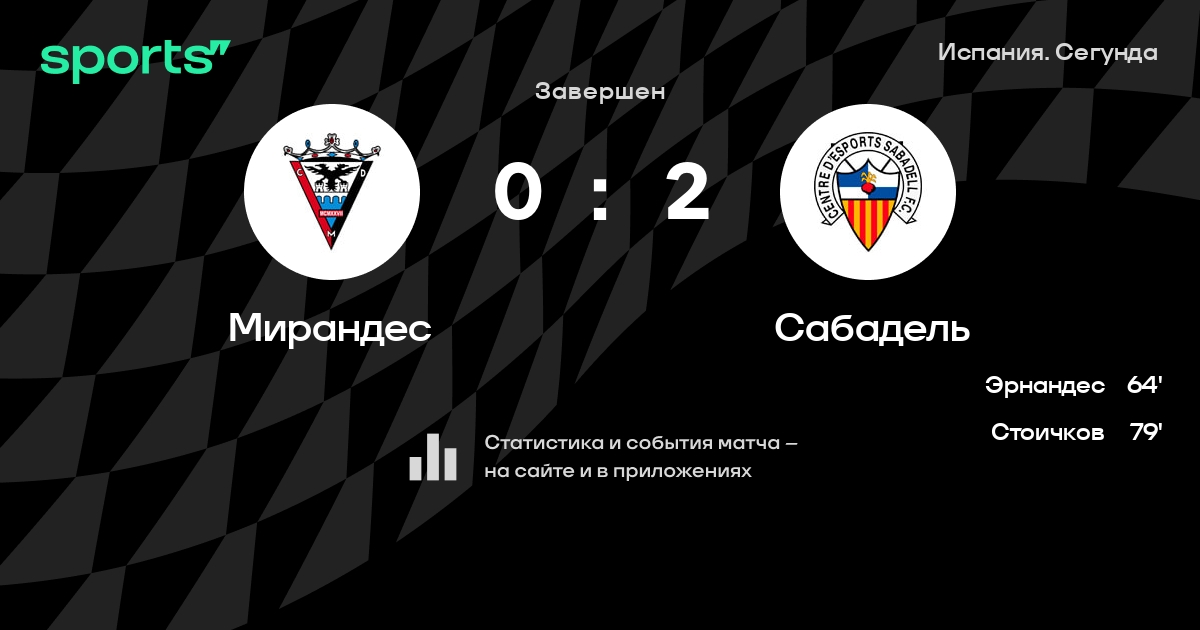 Мирандес – Сабадель: Сабадель не проигрывает в 6 из 8 последних матчей против этого соперника в турнире «Испания. Сегунда»