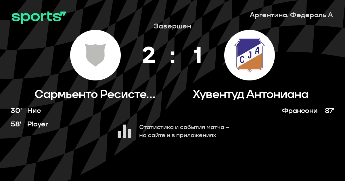 Сармьенто Ресистенсия – Хувентуд Антониана: Хувентуд Антониана побеждает в 3 последних очных матчах