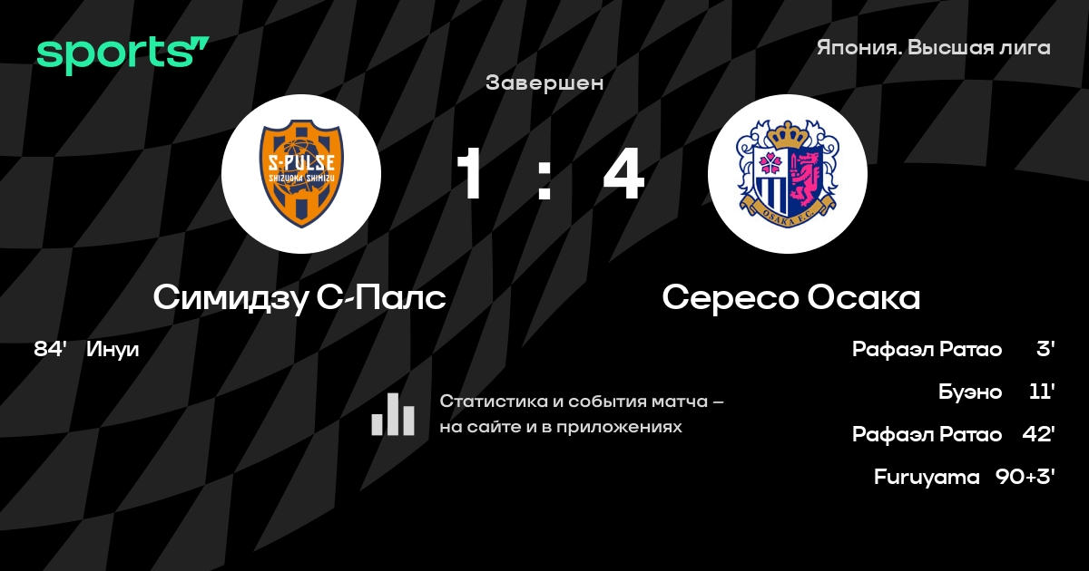 Симидзу С-Палс – Сересо Осака: Симидзу С-Палс забивает в 6 последних матчах против этого соперника