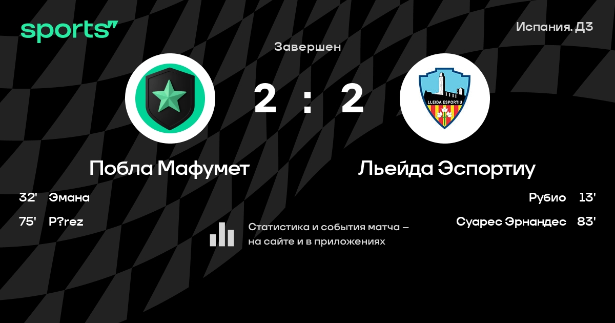 Побла Мафумет – Льейда Эспортиу: коэффициенты