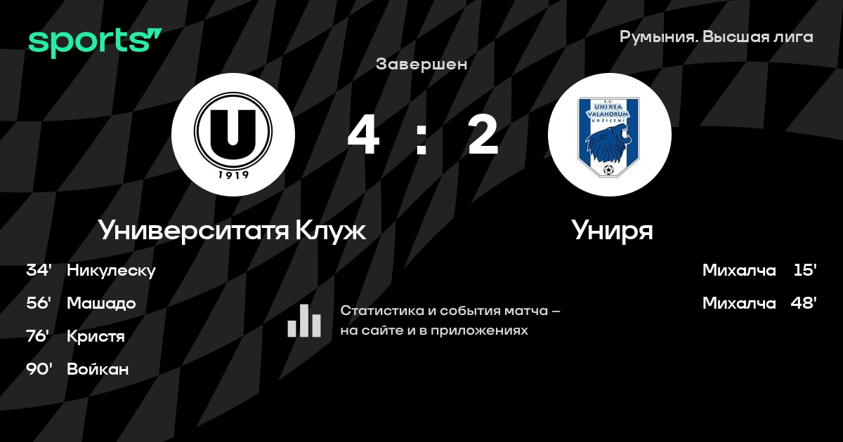 | 8 | Университатя Клуж | 34 | 13 | 8 | 13 | 48 | 54 | -6 | 47 | ||