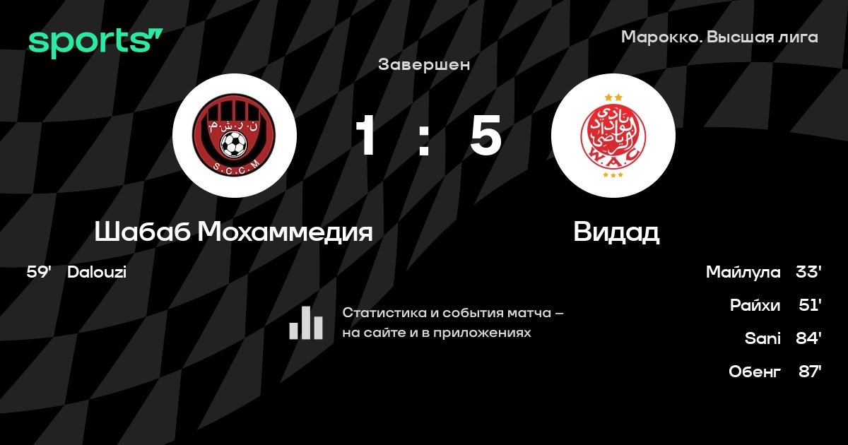 Шабаб Мохаммедия – Видад: Видад побеждает в 4 последних очных матчах