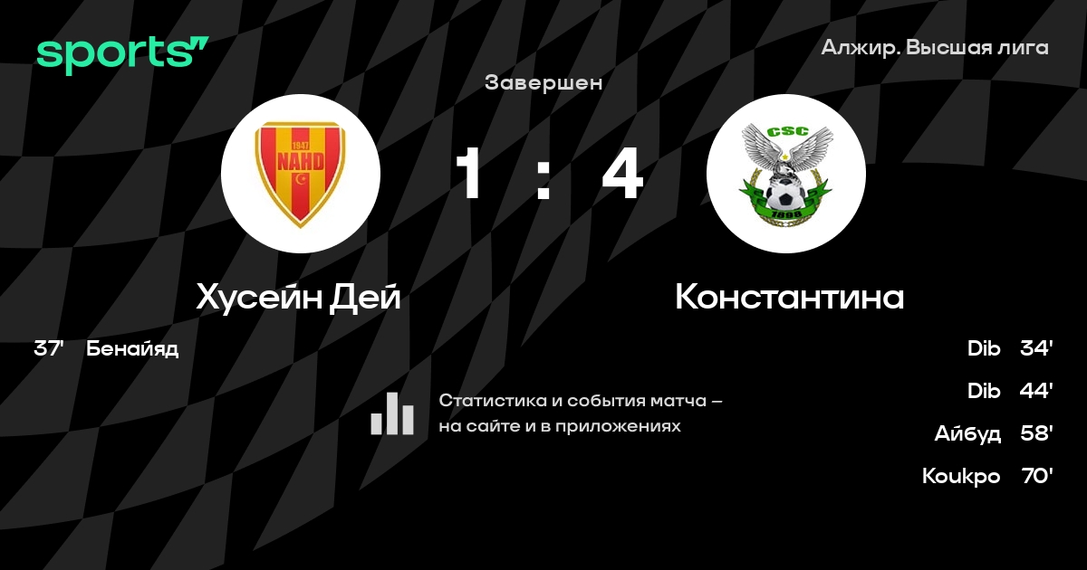 Хусейн Дей – Константина: Хусейн Дей забивает в 4 последних матчах против этого соперника