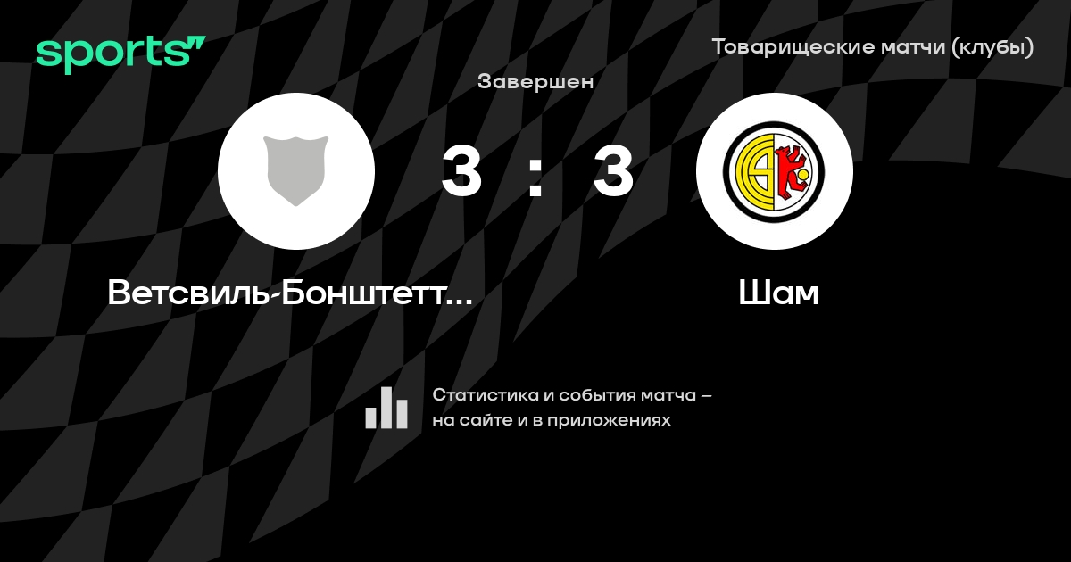 Ветсвиль-Бонштеттен – Шам: Шам забивает в 6 последних матчах против этого соперника