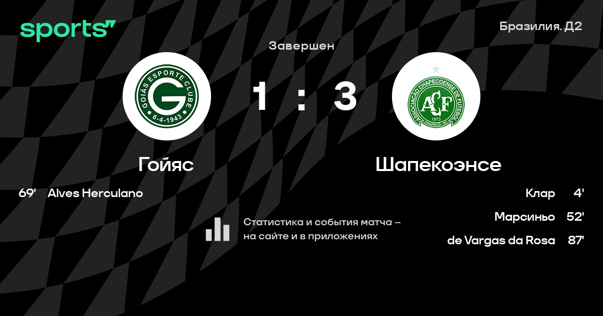 Гойяс – Шапекоэнсе: Гойяс не проигрывает в 8 из 9 последних матчей против этого соперника