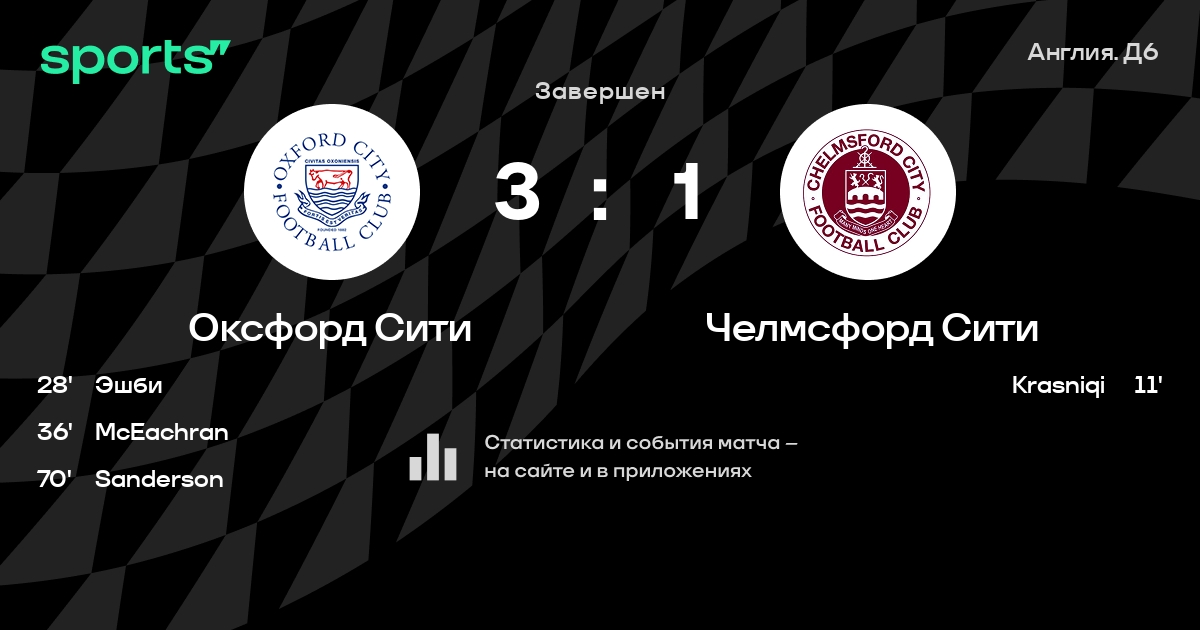 Трансляция Оксфорд Сити - Челмсфорд Сити