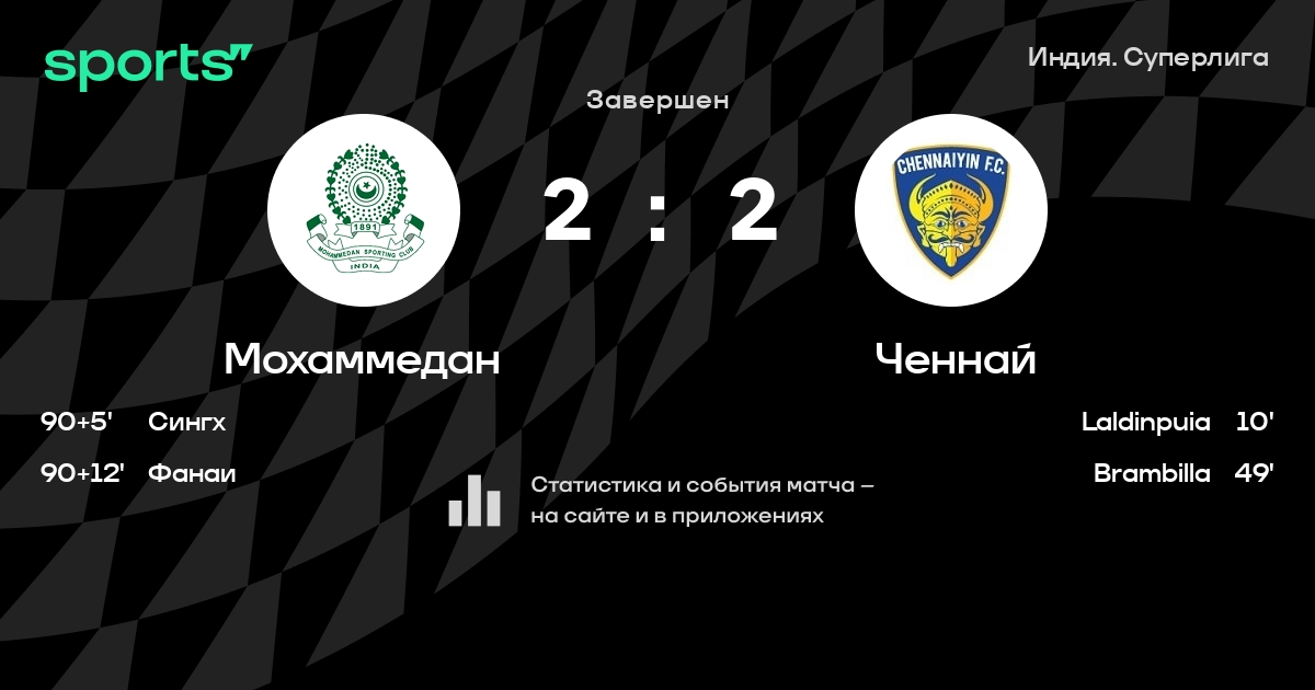 Результат прошлой игры в турнире «Суперлига»: Бенгалуру – Мохаммедан 0:1. После 15 туров Мохаммедан набирает 10 очков и занимает 12 место в турнире. Лучший бомбардир команды – Миржалол Касымов: он забил 2 в 13 матчах. Мохаммедан не проигрывает в 3 последних матчах в рамках турнира «Суперлига». Мохаммедан не пропускает в 3 последних матчах в турнире «Суперлига». В последних 5 играх Мохаммедан забивает 1 голов. В последних 5 играх Мохаммедан пропускает 4 голов.
