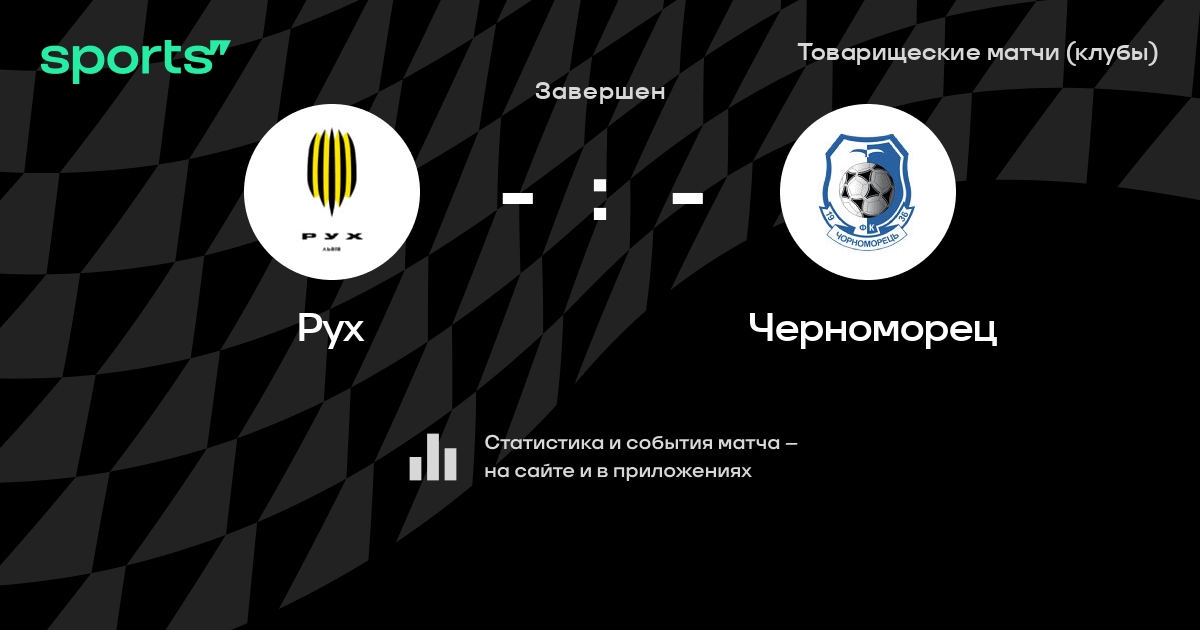 Результат прошлой игры в турнире «Товарищеские матчи (клубы)»: Рух – Нива Тернополь 1:2. Рух не может выиграть в 3 последних матчах в рамках турнира «Товарищеские матчи (клубы)». В 7 последних матчах в турнире «Товарищеские матчи (клубы)» Рух обязательно забивает. Рух пропускает в 3 последних матчах в турнире «Товарищеские матчи (клубы)». В последних 5 играх Рух забивает 5 голов. В последних 5 играх Рух пропускает 5 голов.