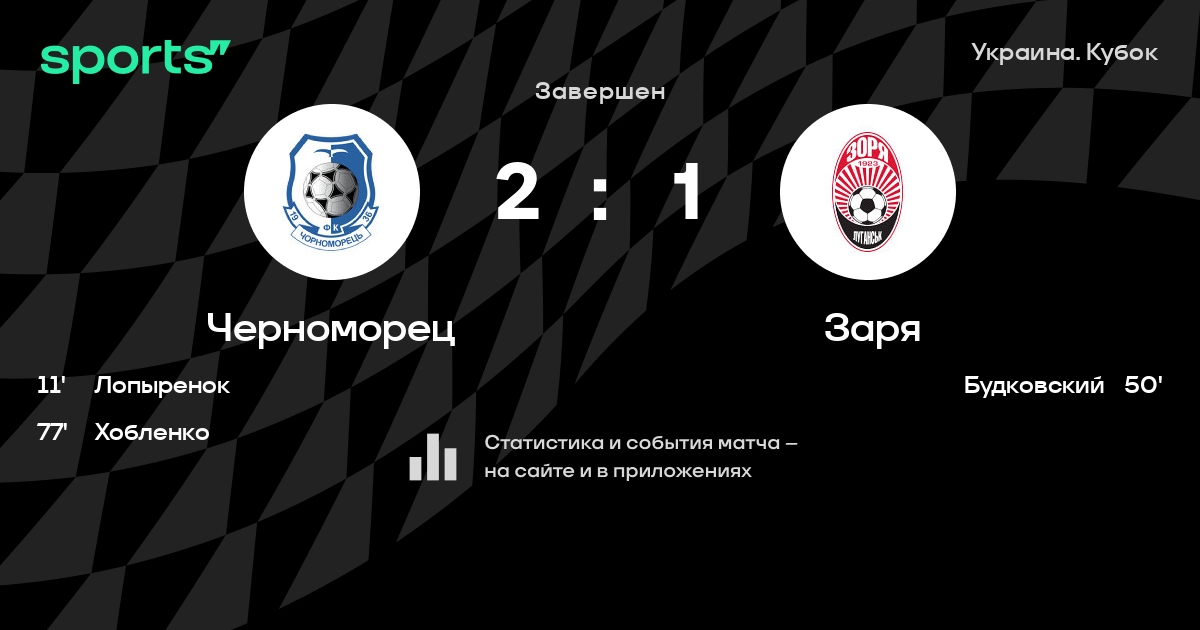 Черноморец Одесса – Заря: Заря забивает в 4 последних матчах против этого соперника