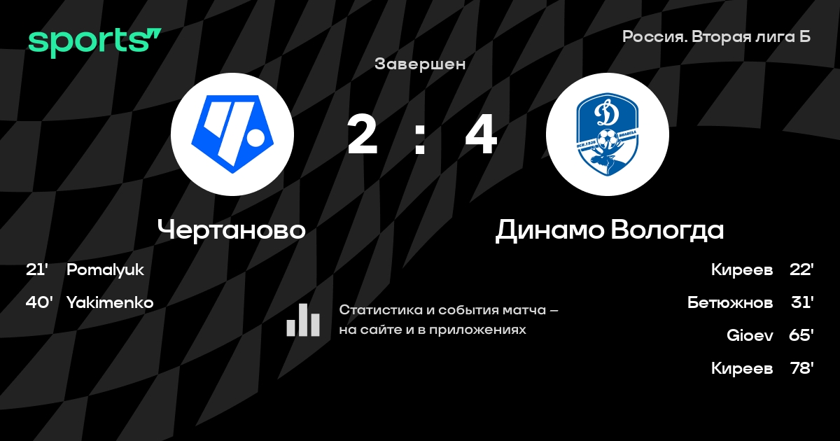 Результат прошлой игры в турнире «Вторая лига»: Иркутск – Чертаново 2:1. После 18 туров Чертаново набирает 22 очков и занимает 8 место в турнире. Лучший бомбардир команды – Александр Помалюк: он забил 6 в 16 матчах. В последних 5 играх Чертаново забивает 10 голов. В последних 5 играх Чертаново пропускает 6 голов.