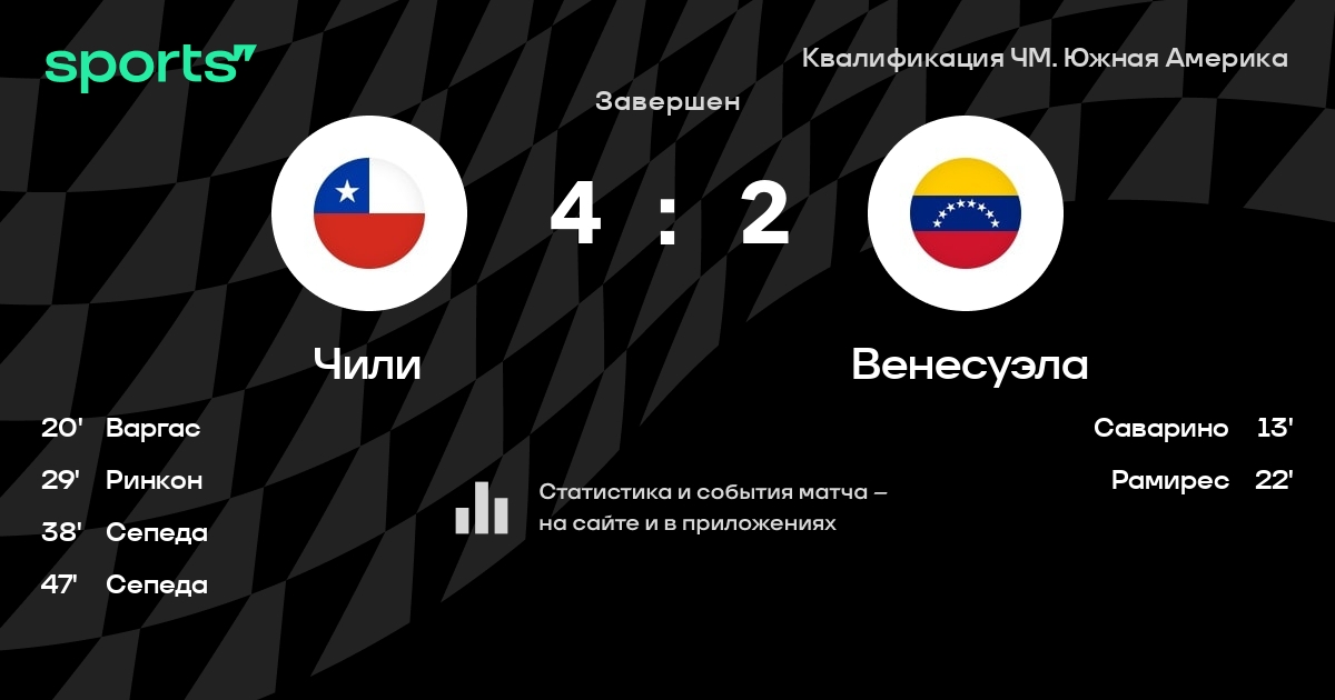 Кортес - Суасо, Диас, Марипан, Ормасабаль - Писарро, Эчеверрия, Сепеда, Видаль, Аравена - ВаргасЗапасные: Рейес, Вигуру, Исла, Кушчевич, Сьерральта, Вимберг, Кабраль, Павес, Герреро, Мора, Тапия