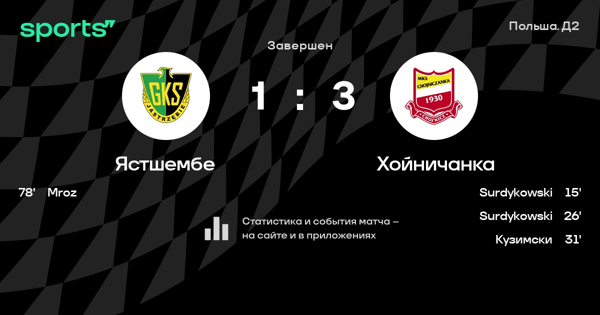 В последних 5 играх Ястшембе забивает в среднем 1.00 гола за игру