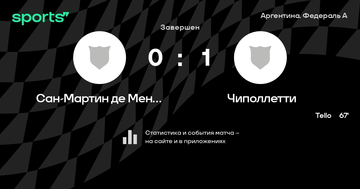 Результат прошлой игры в турнире «Торнео Федераль A»: Соль де Майо – Сан-Мартин де Мендоса 1:4. После 18 туров Сан-Мартин де Мендоса набирает 22 очков и занимает 7 место в турнире. Лучший бомбардир команды – Херман Соса: он забил 3 в 21 матчах. В 4 последних матчах в турнире «Торнео Федераль A» Сан-Мартин де Мендоса обязательно забивает. Сан-Мартин де Мендоса пропускает в 4 последних матчах в турнире «Торнео Федераль A». В последних 5 играх Сан-Мартин де Мендоса забивает 7 голов. В последних 5 играх Сан-Мартин де Мендоса пропускает 5 голов.
