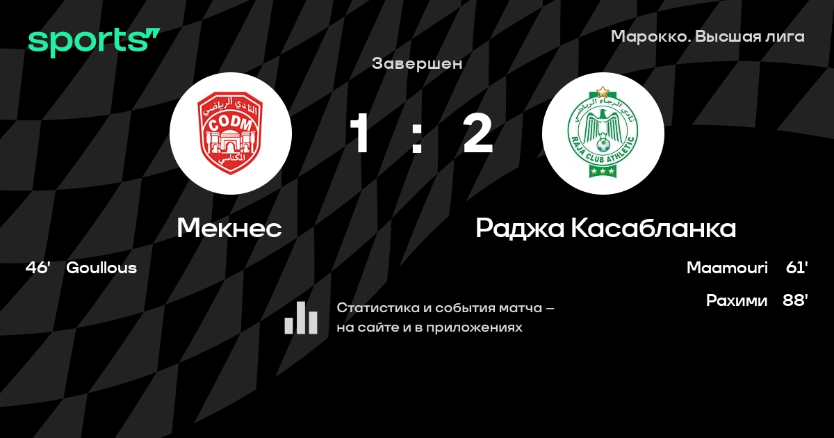 Мекнес – Раджа Касабланка: Раджа Касабланка не пропускает в 7 последних матчах против этого соперника