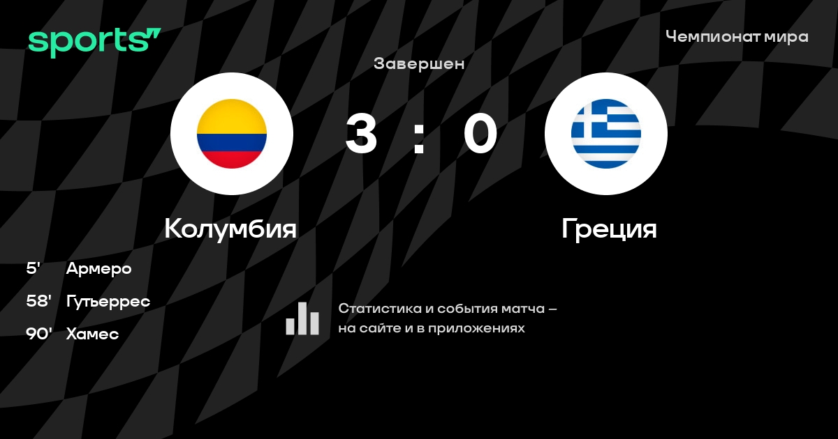 Оспина - Армеро, Йепес, Сапата, Суньига - Агиляр, Санчес, Ибарбо, Куадрадо, Хамес - ГутьерресЗапасные: Варгас, Мондрагон, Арьяс, Вальдес, Карбонеро, Мехия, Кинтеро, Баланта, Бакка, Рамос, Мартинес