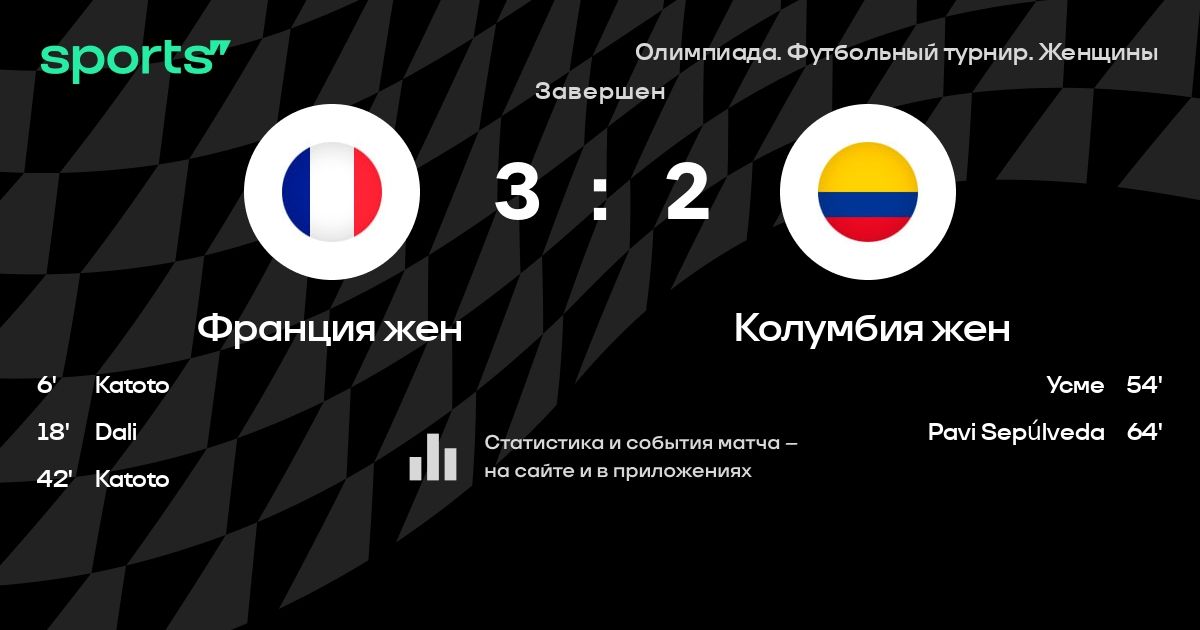 Колумбия жен не выигрывает в 6 последних матчах в турнире «Олимпиада. Футбольный турнир. Женщины»