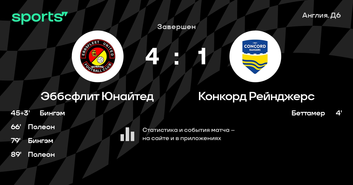 Эббсфлит Юнайтед – Конкорд Рейнджерс: Эббсфлит Юнайтед забивает в 6 последних матчах против этого соперника