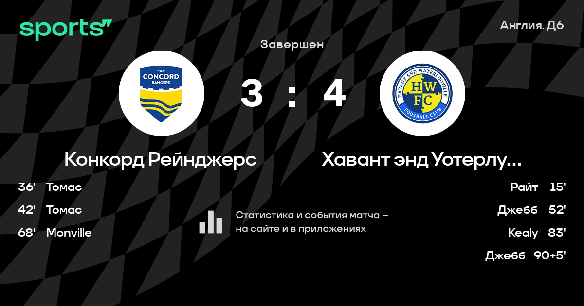 Конкорд Рейнджерс – Хавант энд Уотерлувилл: Хавант энд Уотерлувилл забивает в 3 последних матчах против этого соперника