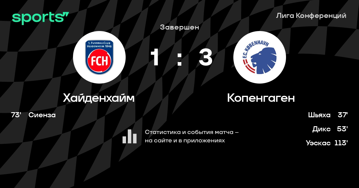 Результат прошлой игры в турнире «Лига Конференций»: Копенгаген – Хайденхайм 1:2. В 3 последних матчах в турнире «Лига Конференций» Хайденхайм обязательно забивает. Хайденхайм пропускает в 4 последних матчах в турнире «Лига Конференций». В последних 5 играх Хайденхайм забивает 4 голов. В последних 5 играх Хайденхайм пропускает 8 голов.
