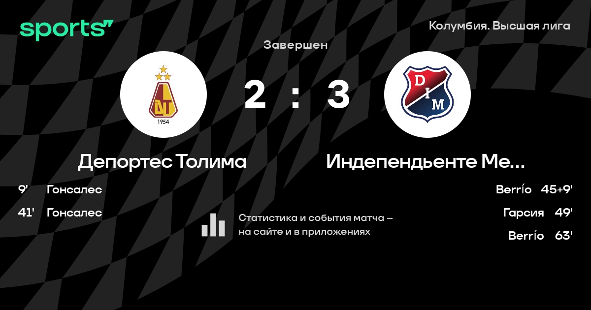 Депортес Толима – Индепендьенте Медельин: Депортес Толима забивает в 5 последних матчах против этого соперника