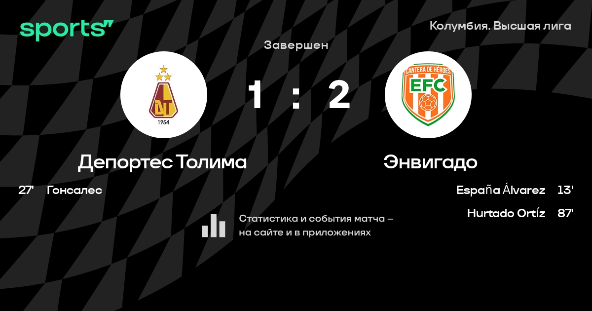 Депортес Толима – Энвигадо: Депортес Толима забивает в 10 последних матчах против этого соперника