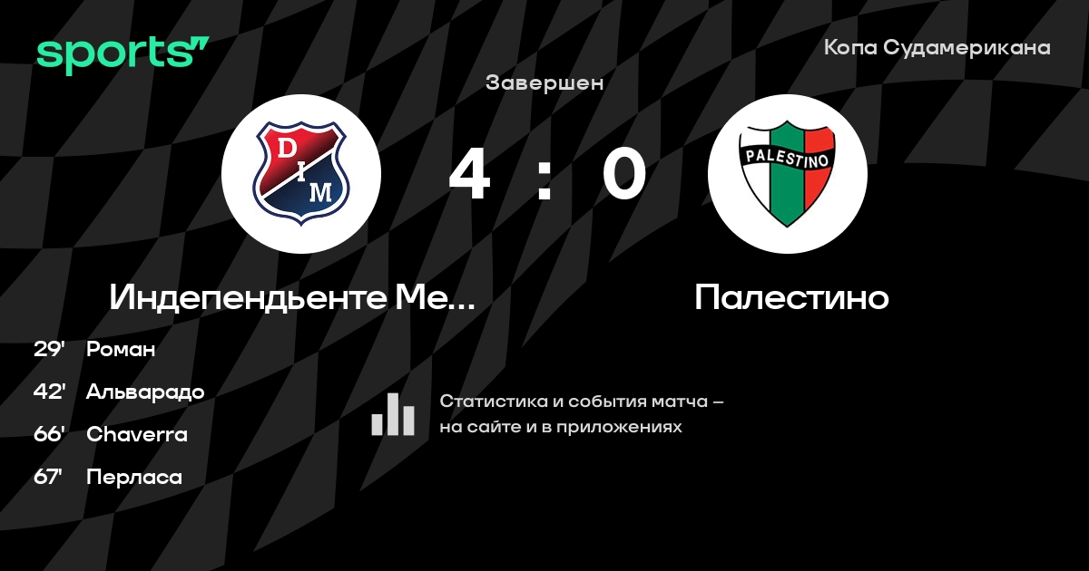 Результат прошлой игры в турнире «Копа Судамерикана»: Палестино – Индепендьенте Медельин 2:2. Индепендьенте Медельин не проигрывает в 6 последних матчах в рамках турнира «Копа Судамерикана». В 6 последних матчах в турнире «Копа Судамерикана» Индепендьенте Медельин обязательно забивает. В последних 5 играх Индепендьенте Медельин забивает 4 голов. В последних 5 играх Индепендьенте Медельин пропускает 5 голов.