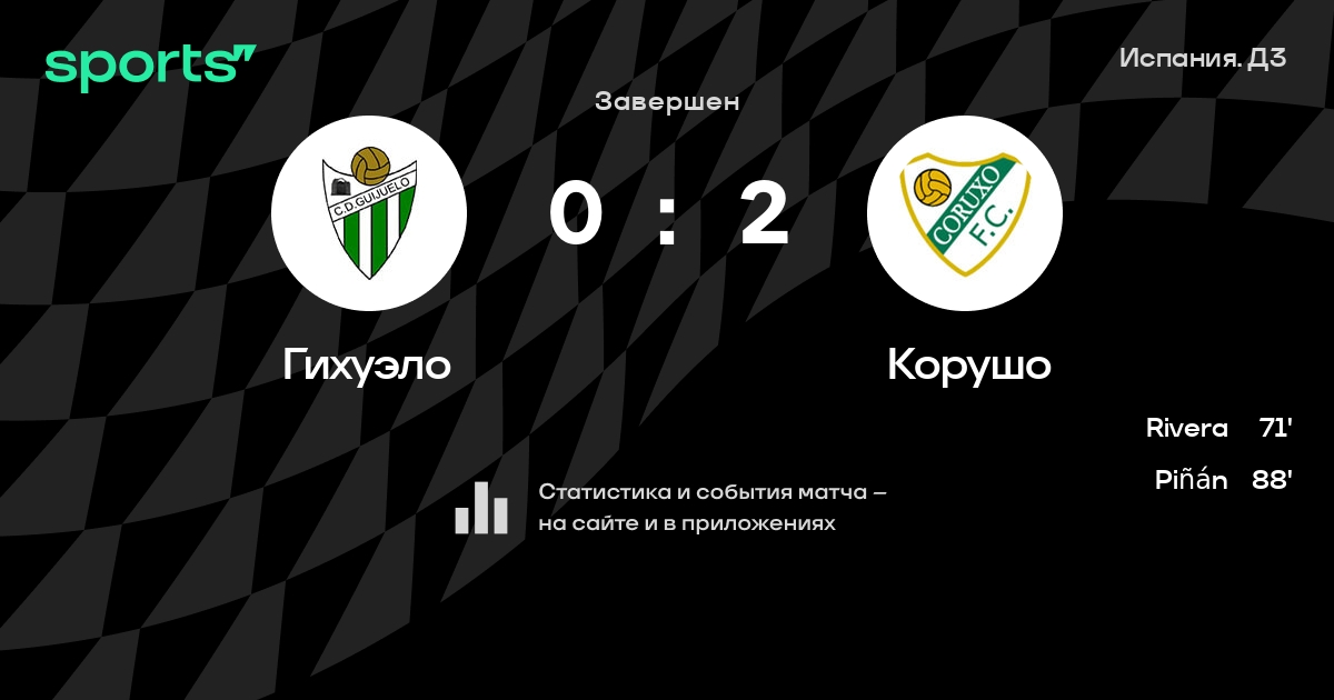 Домингес - Hernández Santiago, Mangana Barberá, Crespo González - де Висенте, Martín Carmona, Aspas Juncal, Piñán De La Fuente - Chabboura Houh, Матео, Vázquez ViñasЗапасные: Fernández Sainz Pardo, Salgueiro González, Родригес, Yebra González, Trigo Pérez, Вила, Ares Piñeiro, Rivera Valenzuela, Lopez Moreno