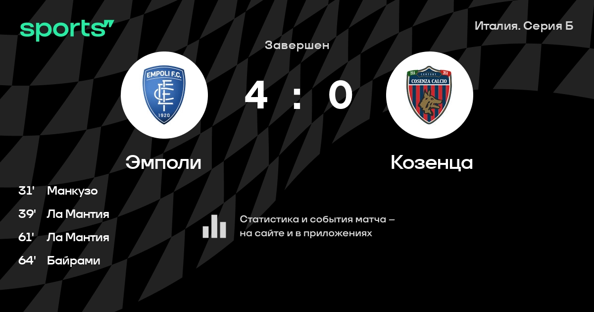 Эмполи – Козенца: Козенца побеждает в 3 последних очных матчах в гостях в турнире «Италия. Серия B»