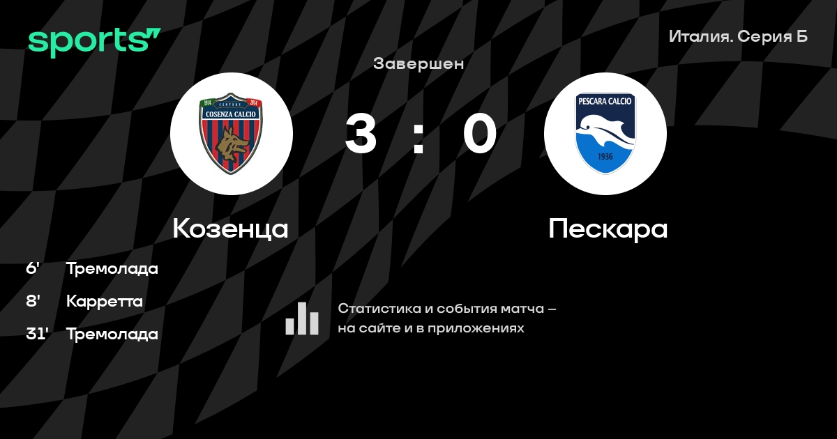 Козенца – Пескара: Пескара не проигрывает в 6 последних матчах против этого соперника