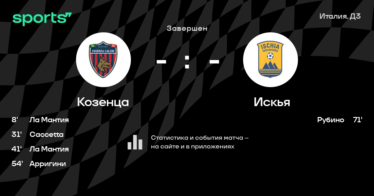 Саракко - Di Nunzio, Тедески, Pinna, Blondett - Арригони, Caccetta, Criaco, Стателла - Ла Мантия, АрригиниЗапасные: Перина, Bellanza, Novello, Di Somma, Bilotta, Фьордилино, Коллоколо, Gaudio, Minardi, Ventre, Parigi, Cavallaro
