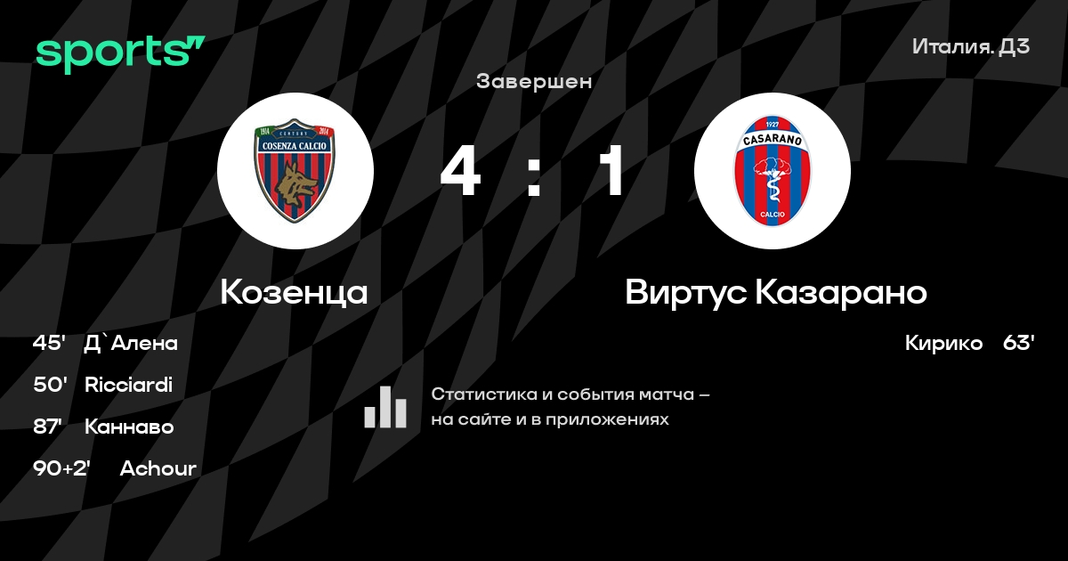 Козенца – Виртус Казарано: коэффициенты