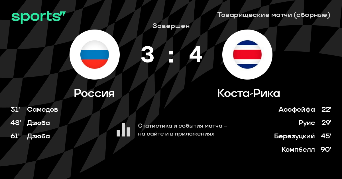 Навас - Матаррита, Акоста, Кальво, Гонсалес, Сальватьерра - Руис, Борхес, Асофейфа, Венегас - УреньяЗапасные: Пембертон, Альварадо, Уоллес, Уостон, Ордиан, Овьедо, Уманья, Техеда, Гусман, Кэмпбелл, Руис