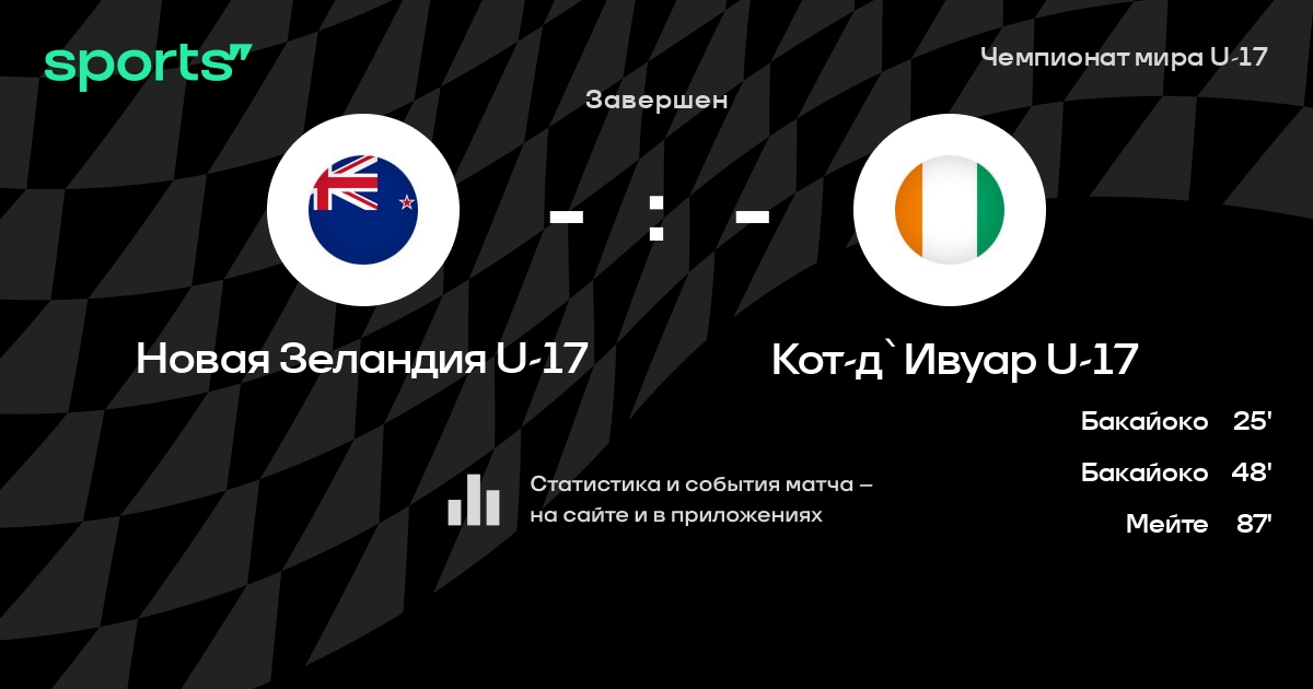 Трансляция Новая Зеландия U-17 - Кот-д`Ивуар U-17