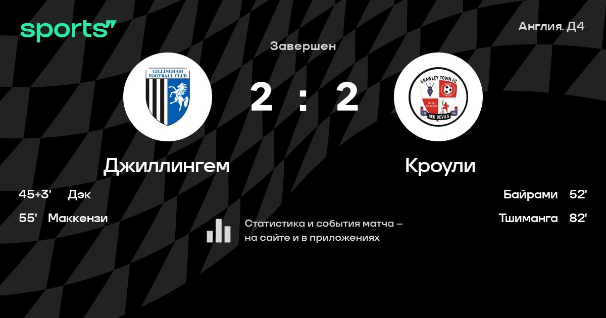 Джиллингем – Кроули: Джиллингем не проигрывает в 10 из 12 последних матчей против этого соперника