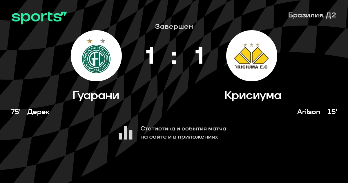 Гуарани – Крисиума: Гуарани не проигрывает в 7 из 9 последних матчей против этого соперника