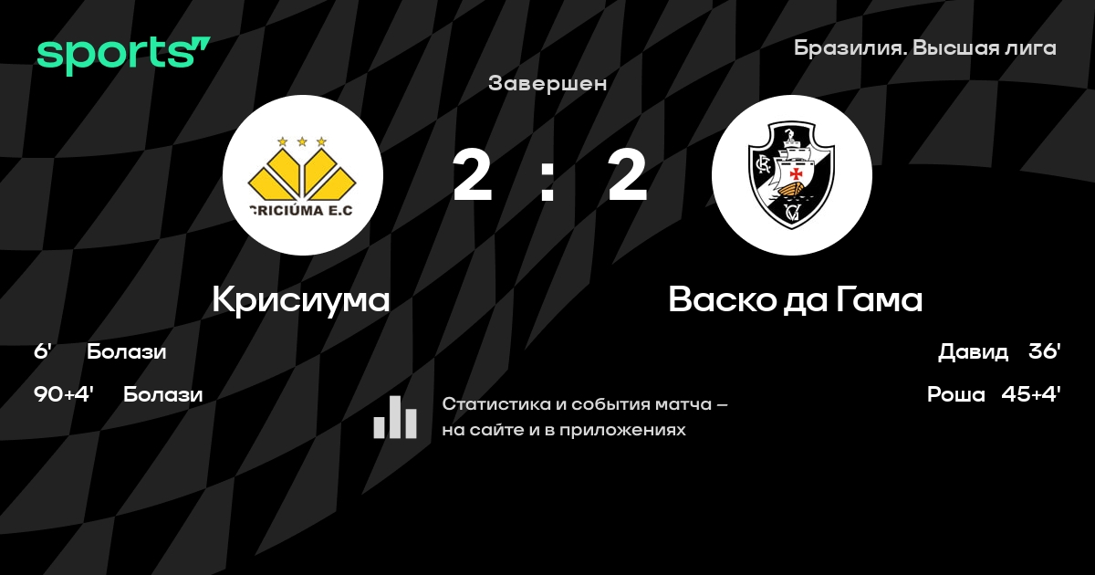 Крисиума – Васко да Гама: Крисиума забивает в 7 из 9 последних матчей против этого соперника
