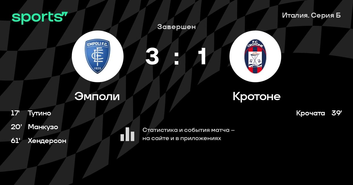 Бриньоли - Балковец, Майетта, Романьоли, Фьямоцци - Хендерсон, Риччи, Фраттези - Байрами, Тутино, МанкузоЗапасные: Брандуани, Перуккини, Николау, Пинна, Сьерральта, Бандинелли, Фантаччи, Штулац, Журковски, Чичиретти, Ла Мантия
