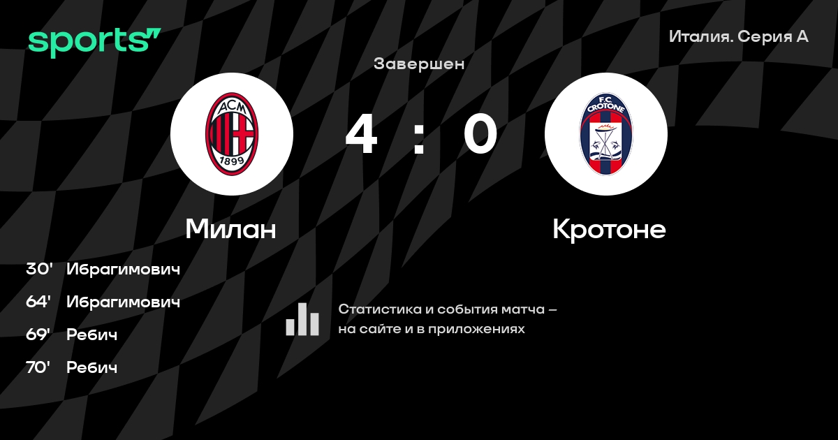 Чемпионат Италии. «Милан» разгромил «Кротоне», «Лацио» был сильнее «Кальяри»