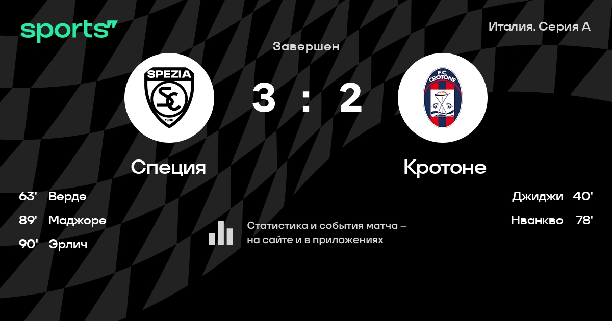 Проведель - Маркицца, Эрлич, Исмайли, Феррер - Побега, Риччи, Маджоре - Джаси, Нзола, ВердеЗапасные: Зут, Шабо, Терци, Виньяли, Акампора, Агуме, Агудело, Бастони, Лео Сена, Галабинов, Пикколи, Фариас