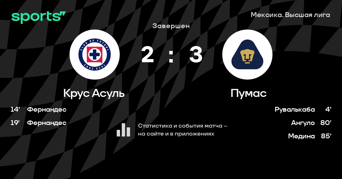 Чемпионат Мексики: шансы Крус Асуль – Пумас победу в матче 17-го тура чемпионата Мексики
