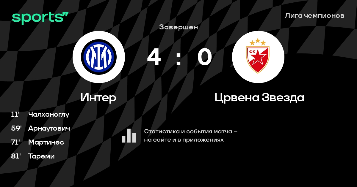 Зоммер - Бастони, де Врей, Павар - Карлос Аугусто, Мхитарян, Чалханоглу, Зелиньски, Думфрис - Арнаутович, ТаремиЗапасные: Ди Дженнаро, Жозеп Мартинес, Ачерби, Биссек, Дармиан, Димарко, Аслани, Фраттези, Мартинес, Тюрам