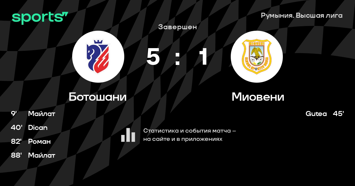 Ботошани – Миовени: Миовени не проигрывает в 5 из 7 последних матчей против этого соперника