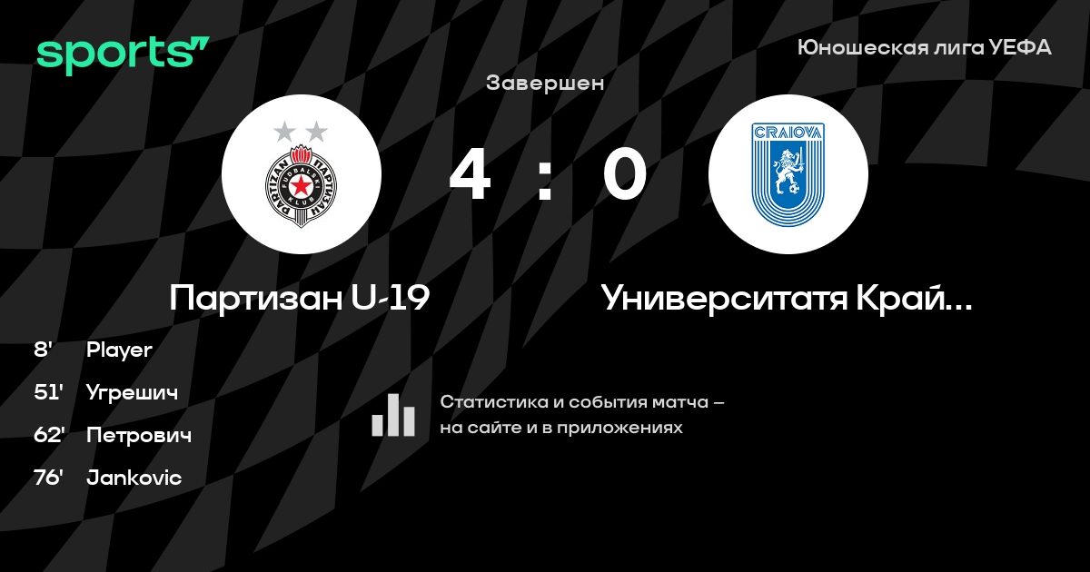 Трансляция Партизан U-19 - Университатя Крайова U-19