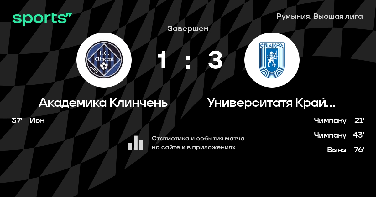 Академика Клинчень – КСУ Крайова: Академика Клинчень не пропускает в 0 из 7 последних матчей против этого соперника
