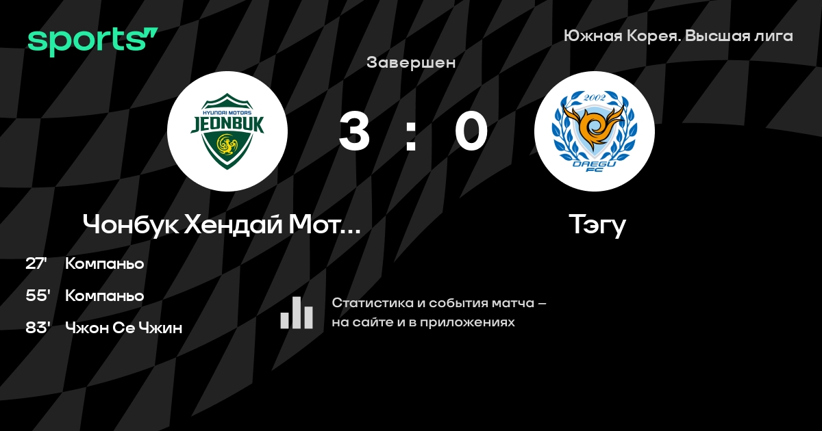 Чонбук Хендай Моторс – Тэгу: Чонбук Хендай Моторс побеждает в 3 последних очных матчах