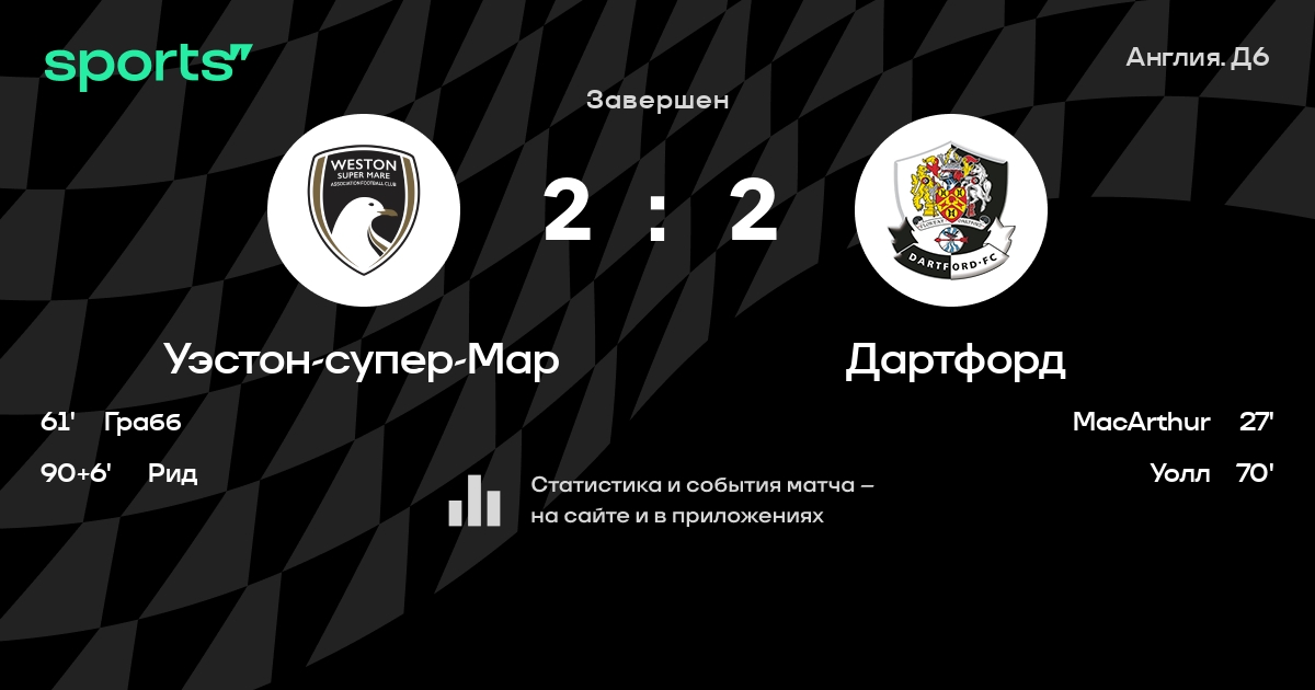 Уэстон-супер-Мар - Дартфорд: положение в турнире