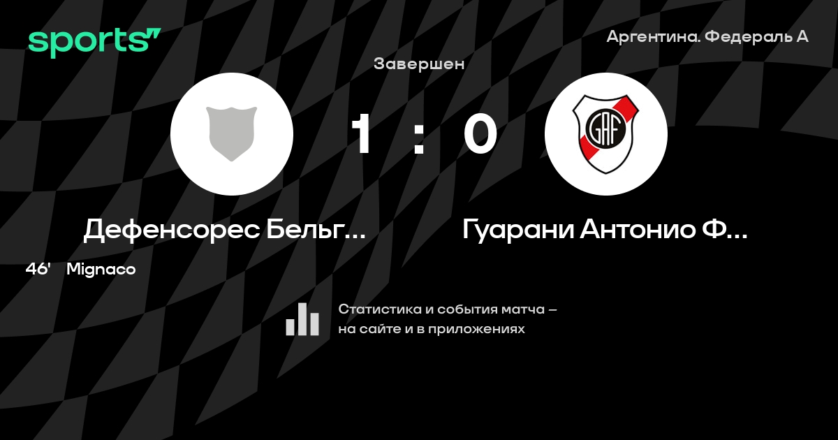 Дефенсорес Бельграно ВР - Гуарани Антонио Франко: статистика матча