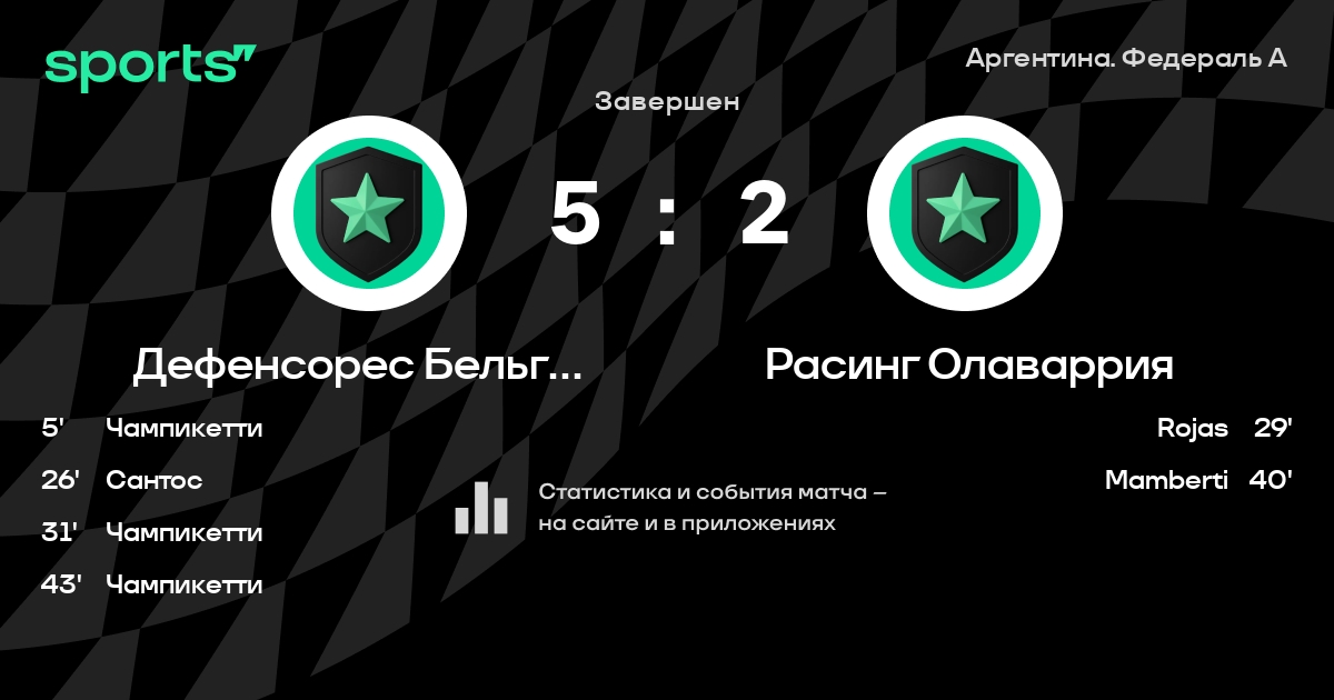Дефенсорес Бельграно ВР - Расинг Олаваррия