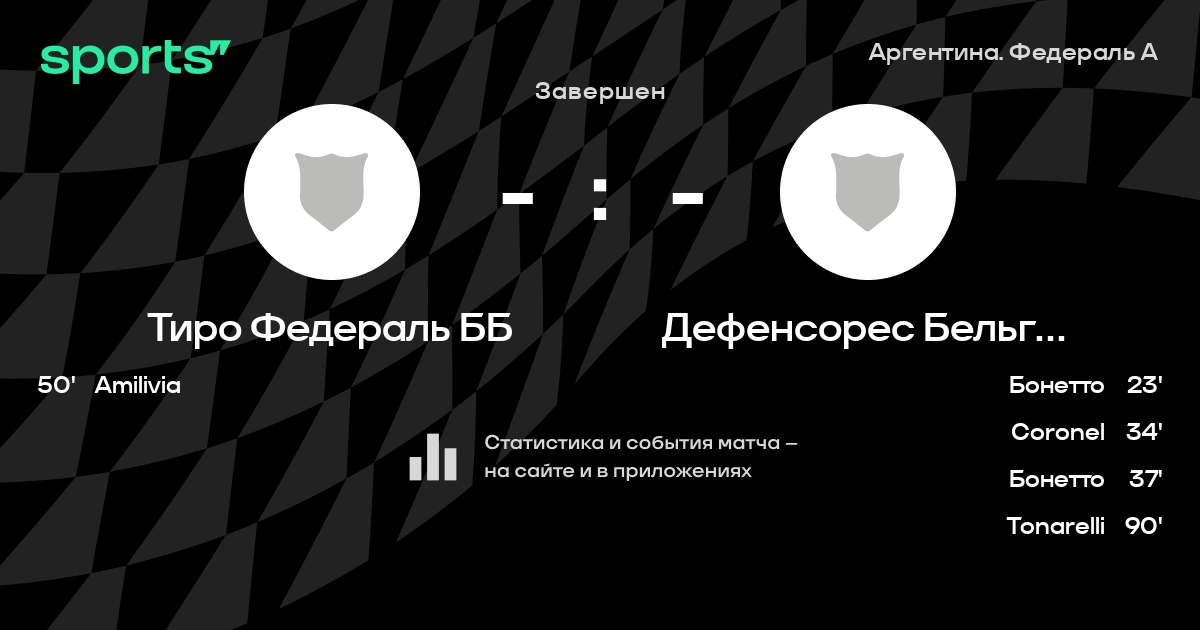 Трансляция Тиро Федераль ББ - Дефенсорес Бельграно ВР