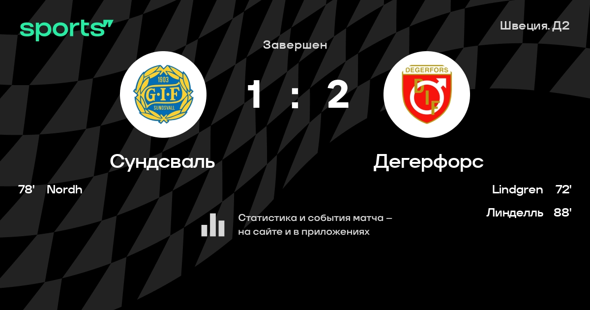 Результат прошлой игры в турнире «Первая лига»: Skovde AIK – Сундсваль 0:2. После 25 туров Сундсваль набирает 27 очков и занимает 15 место в турнире. Лучший бомбардир команды – Y. Finey: он забил 6 в 26 матчах. Дегерфорс имеет в активе больше всех побед в турнире – 14. В последних 5 играх Сундсваль забивает 4 голов. В последних 5 играх Сундсваль пропускает 3 голов.